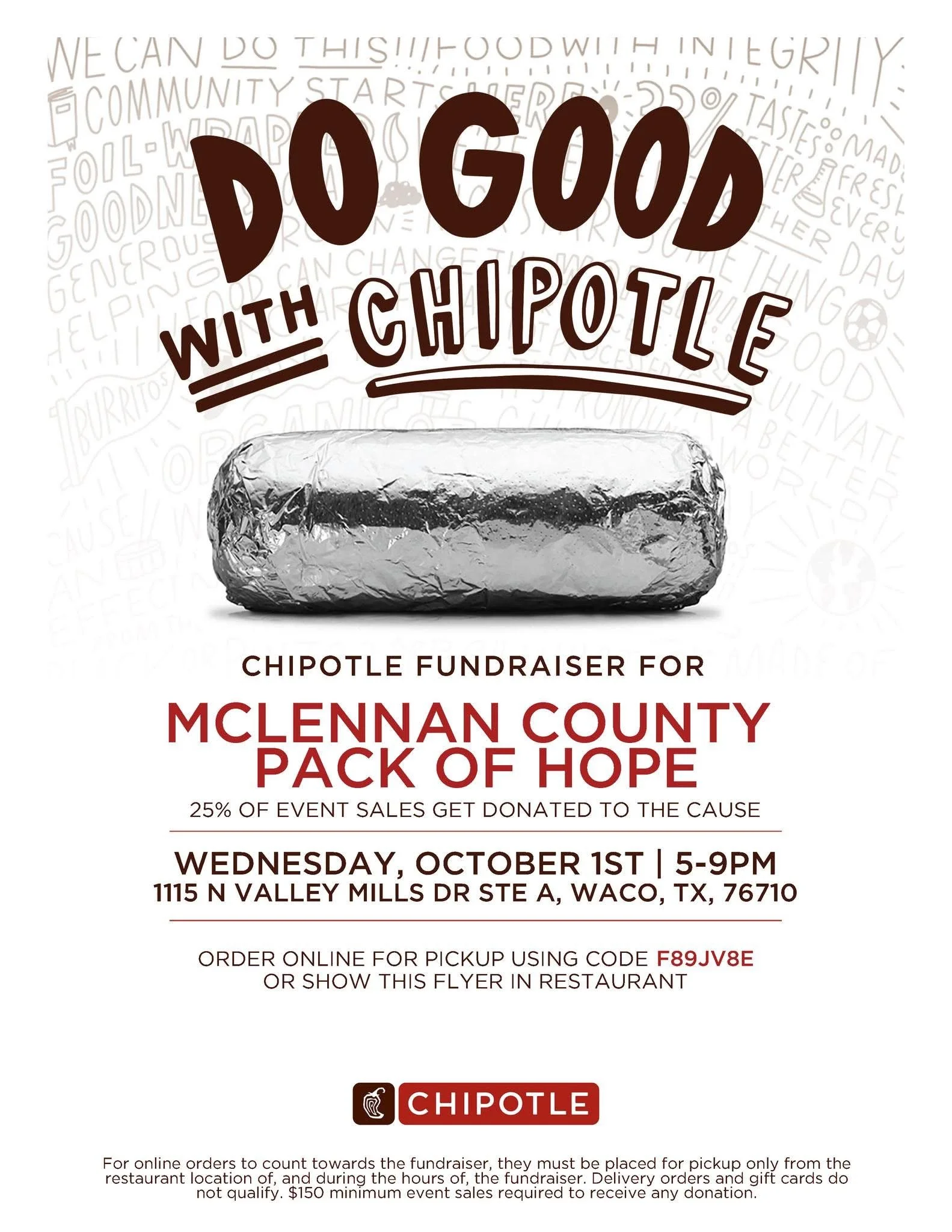 Chipotle Pack of Hope Fundraiser- Wednesday, October 1st
