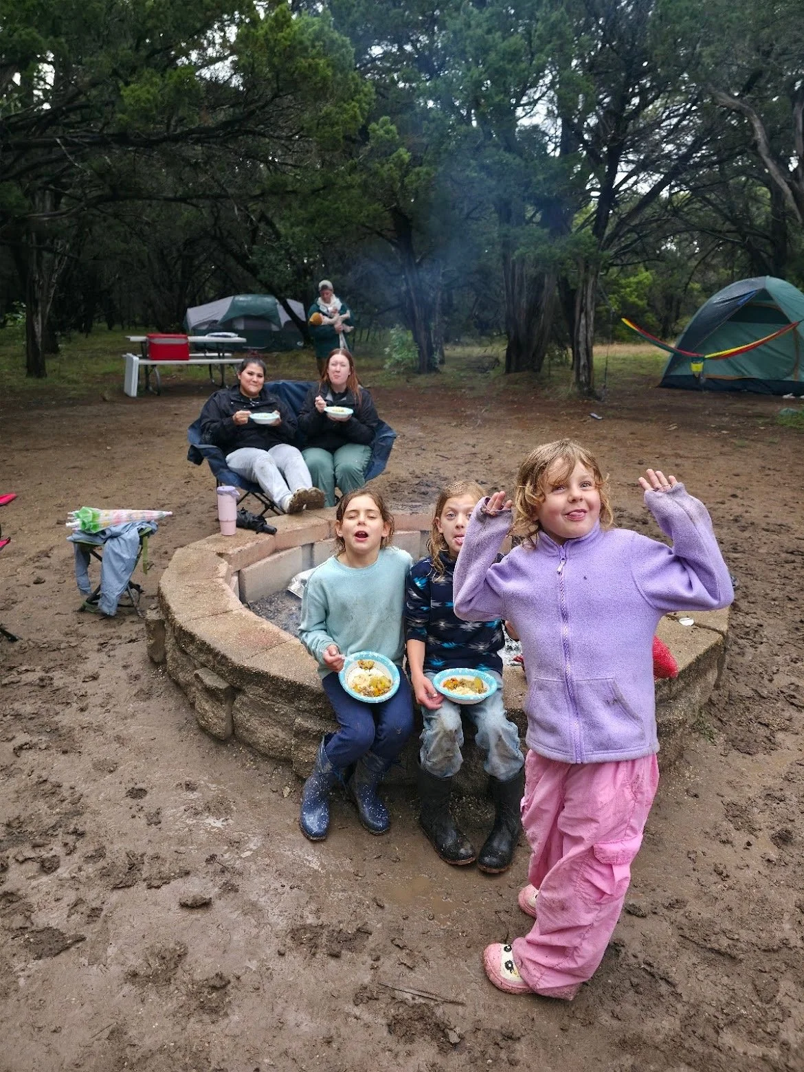 We spent a lot of time by the fire, laughing, playing games, napping in hammocks, and watching the kids splash in puddles, get covered in an obscene amount of mud, and explore trails, caves and the woods.